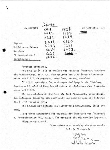 Περι Έκθεσης Γλυπτικής στα Πλαίσια της Διεθνούς Έκθεσης Μαρμάρου