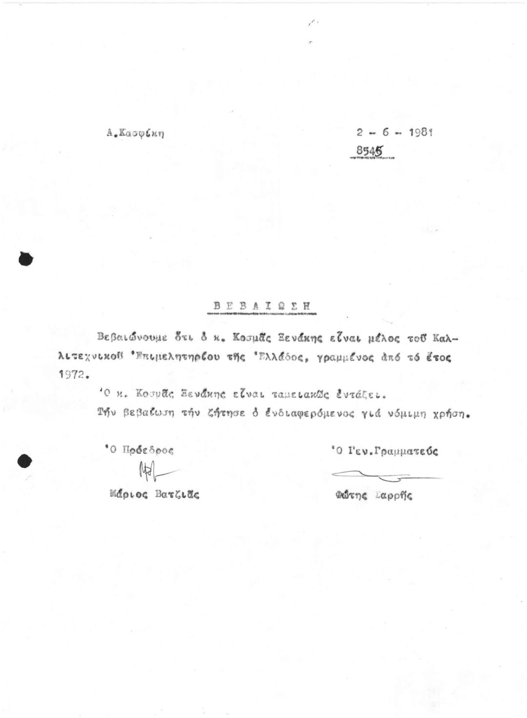Archive Of The Chamber Of Fine Arts Of Greece