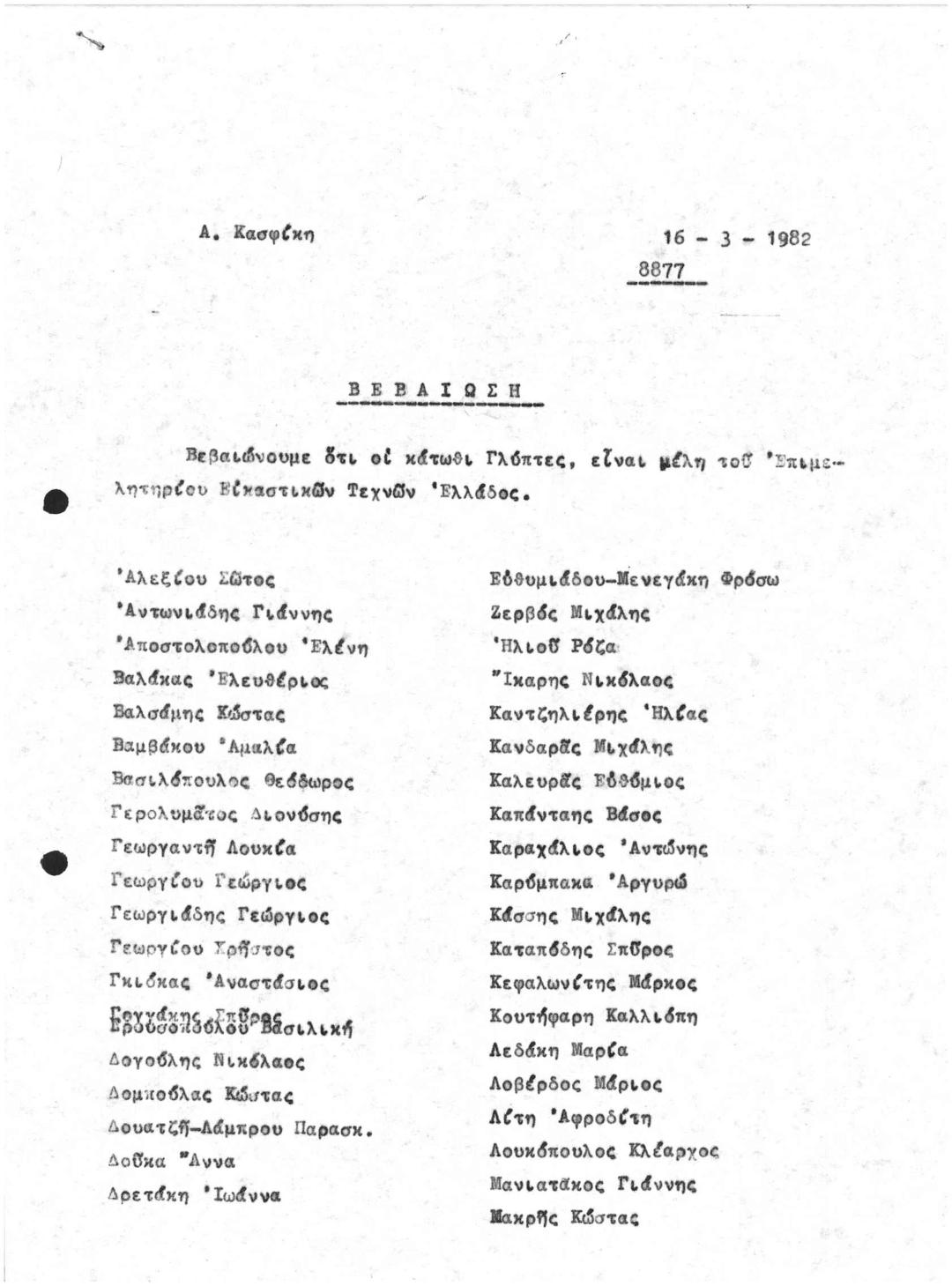Βεβαίωση Μελών ΕΕΤΕ Τμήματος Γλυπτικής