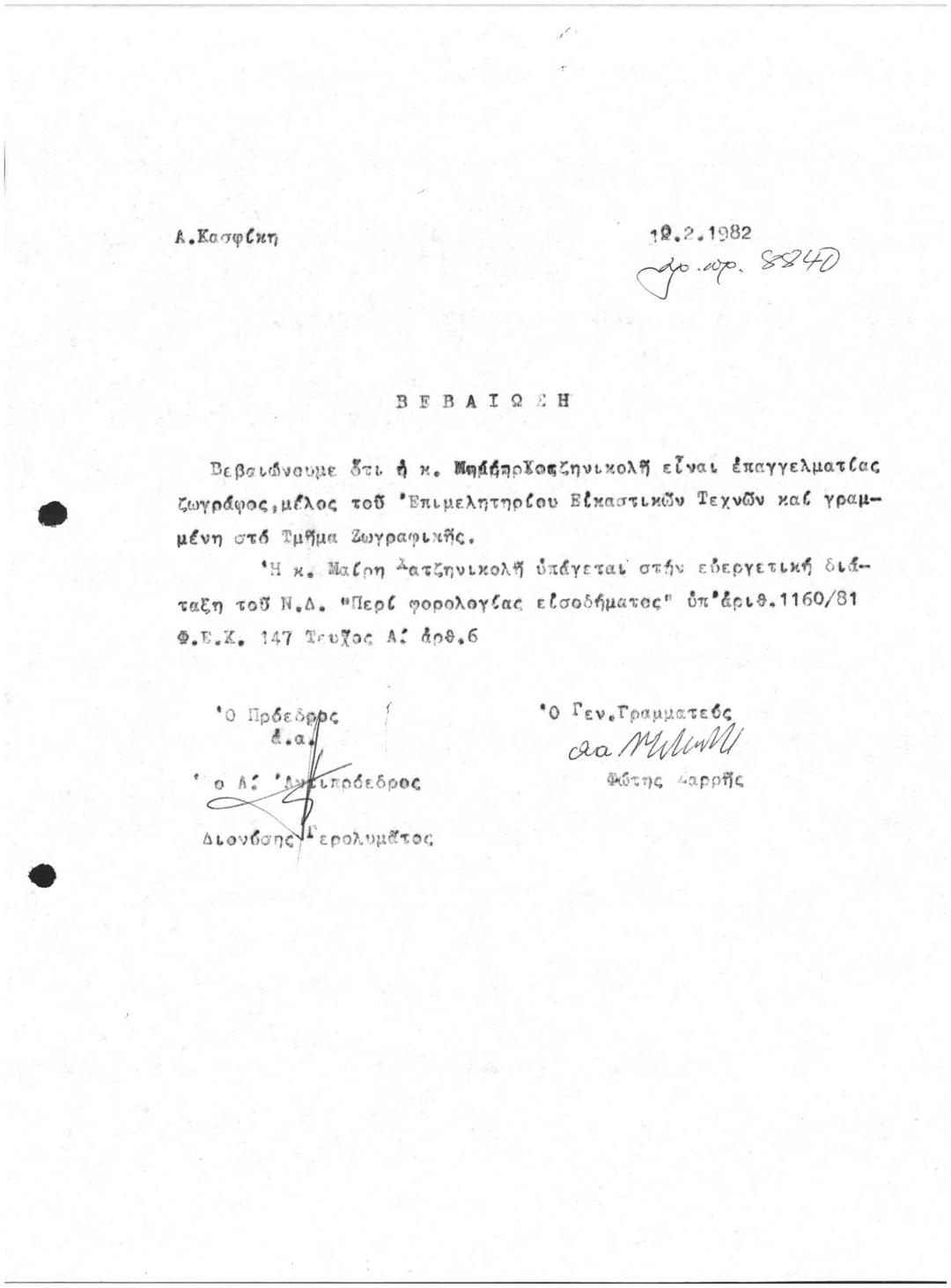 Βεβαίωση Μέλους ΕΕΤΕ Τμήματος Ζωγραφικής