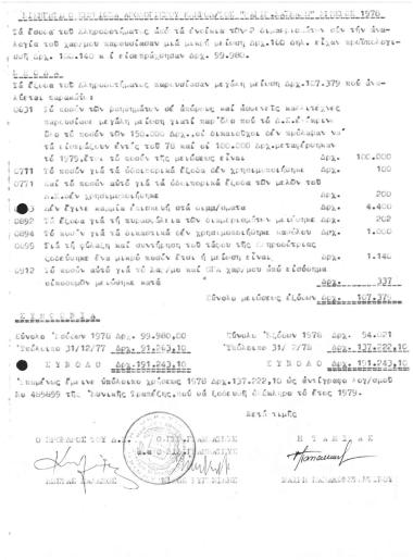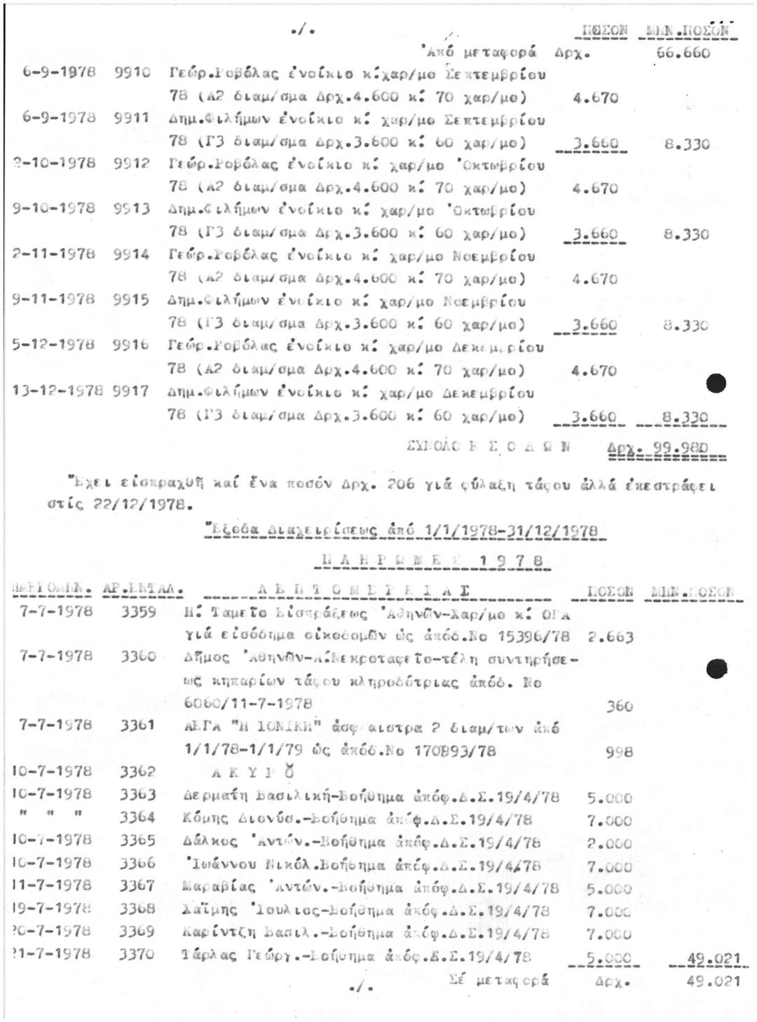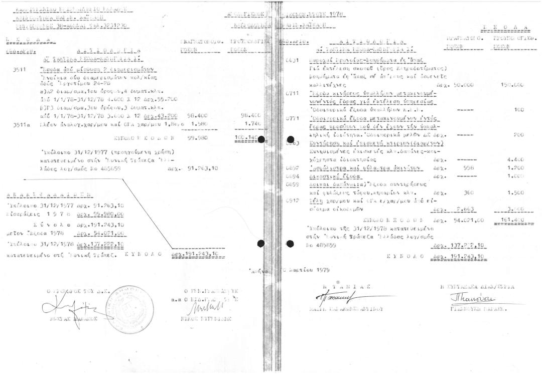 Οικονομικός Απολογισμός 1978 Κληροδοτήματος Μαρ. Χαϊκάλη