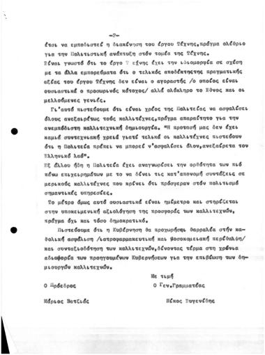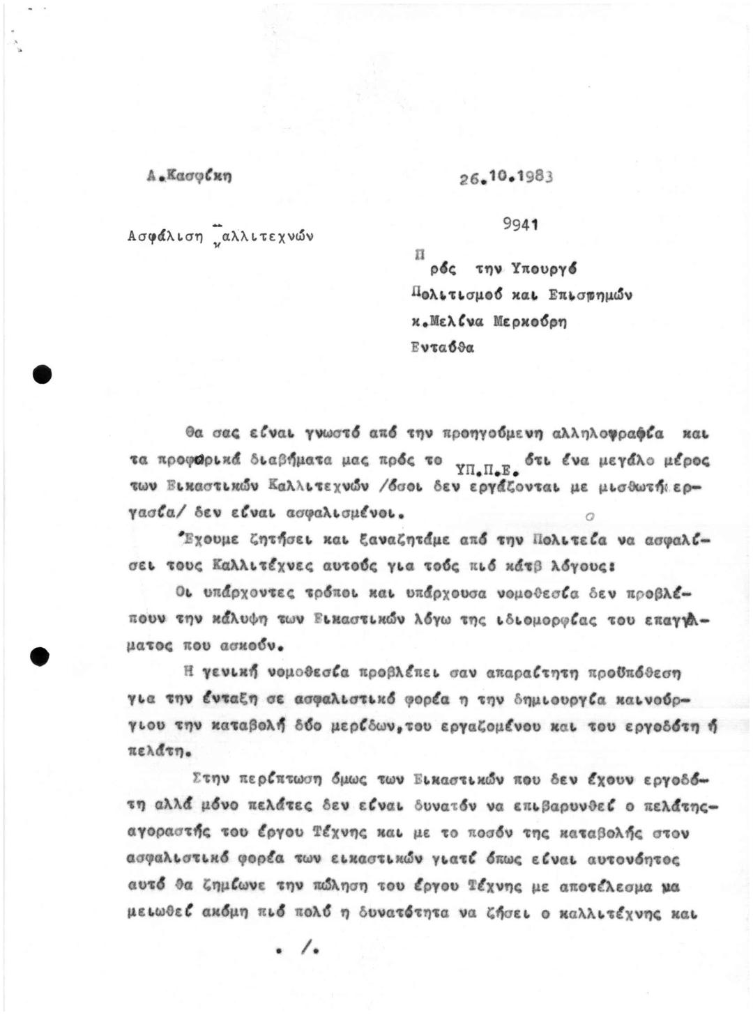 Επιστολή προς την Υπουργό Πολιτισμού και Επιστημών κ. Μελίνα Μερκούρη