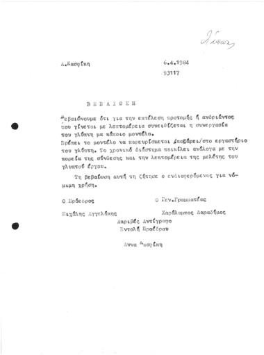 Βεβαίωση περι Συνεργασίας Γλύπτη Μοντέλου