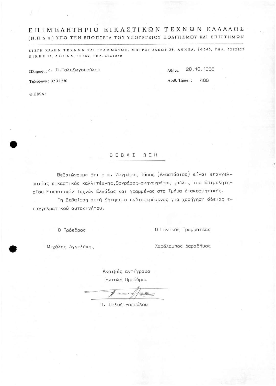 Βεβαίωση Μέλους ΕΕΤΕ Τμήματος Διακοσμητκής