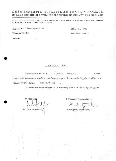 Βεβαίωση Μέλους ΕΕΤΕ Τμήματος Διακοσμητικής