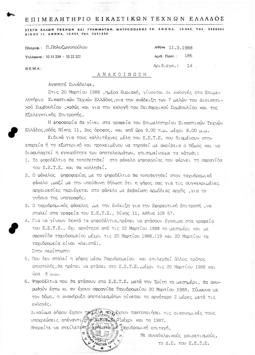 Περι Εκλογών για την Ανάδειξη 7 Μελών ΔΣ του ΕΕΤΕ Πειθαρχικού Συμβουλίου και Εξελεγκτικής Επιτροπής