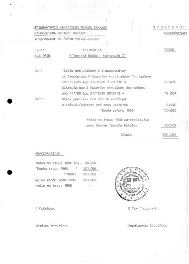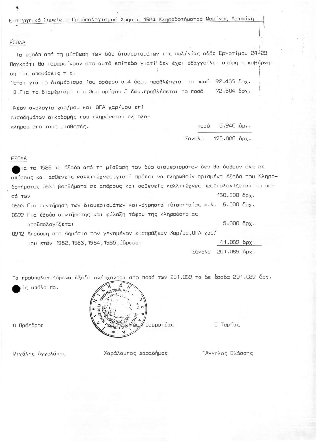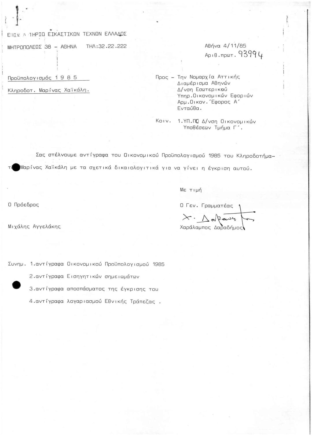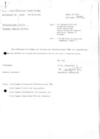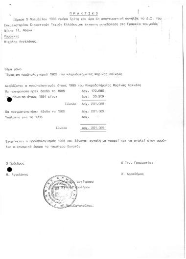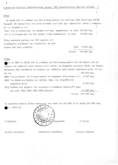 Προϋπολογισμός 1985 κληροδοτ. Μαρίνας ΧαΪκάλη