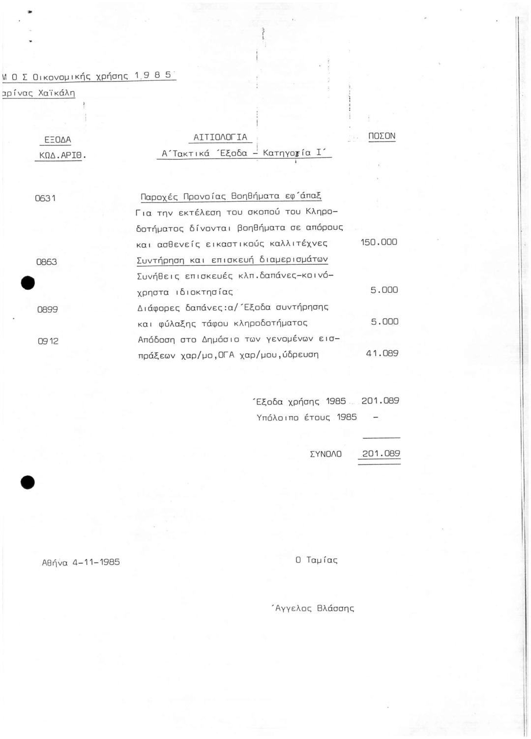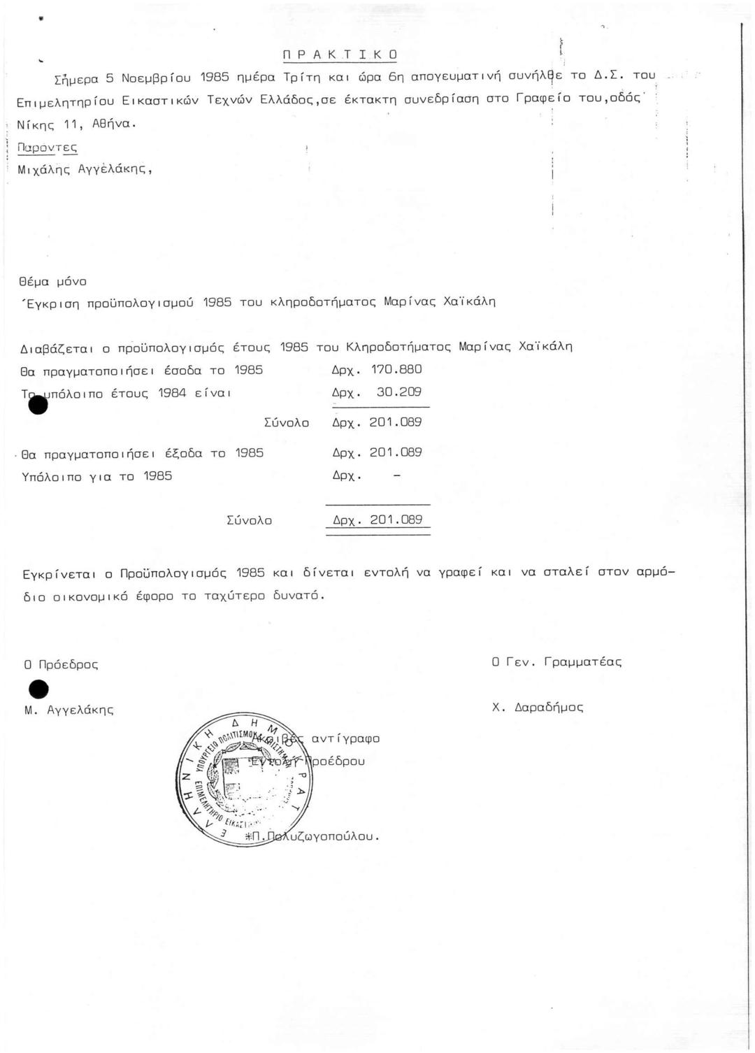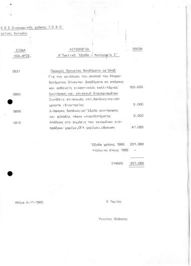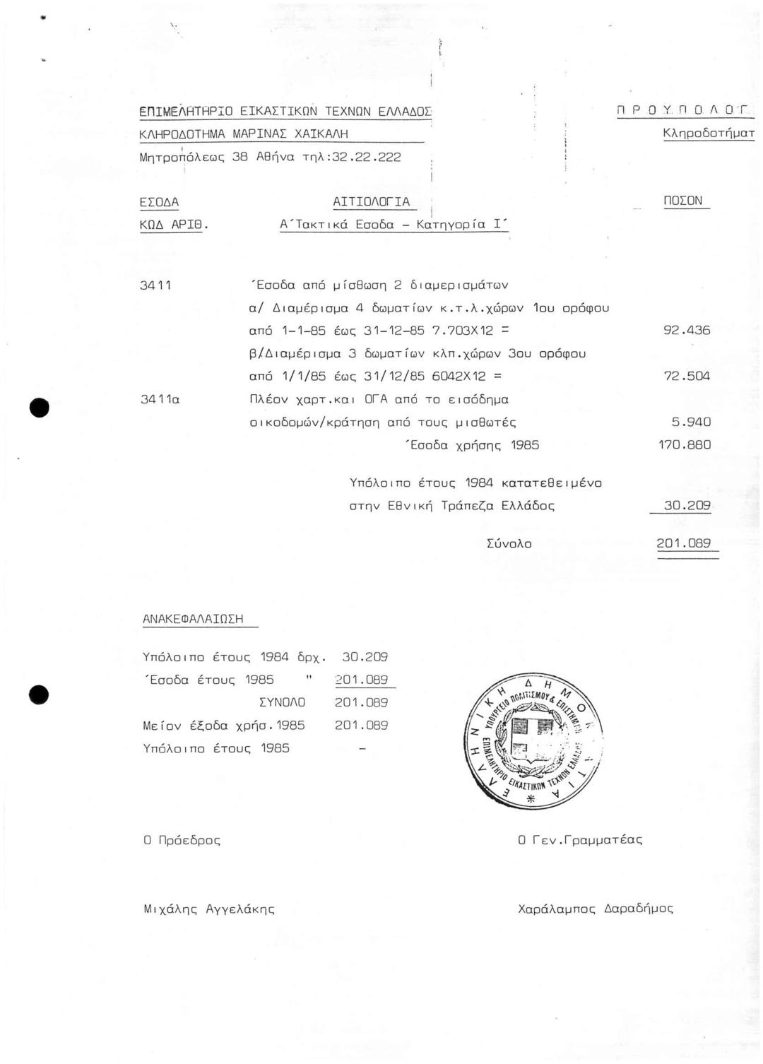 Προϋπολογισμός 1985 κληροδοτ. Μαρίνας ΧαΪκάλη