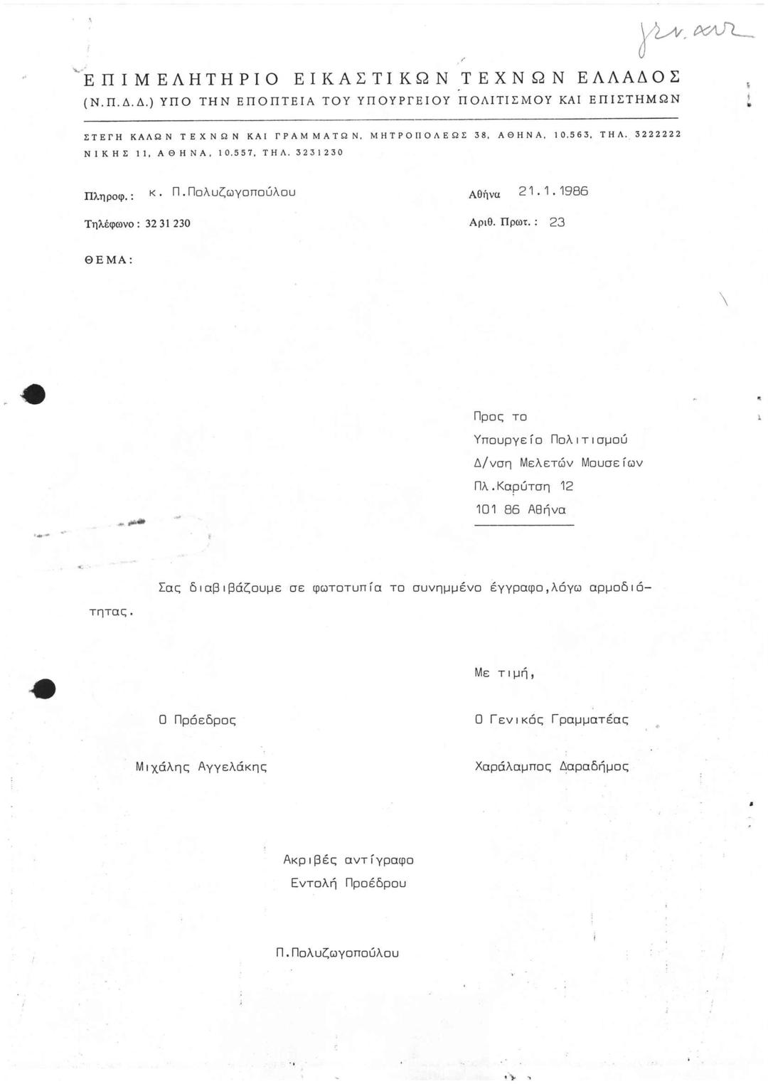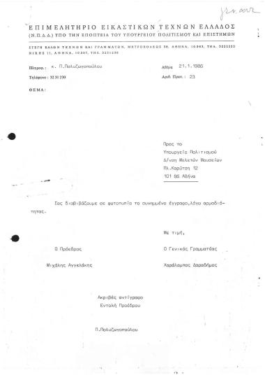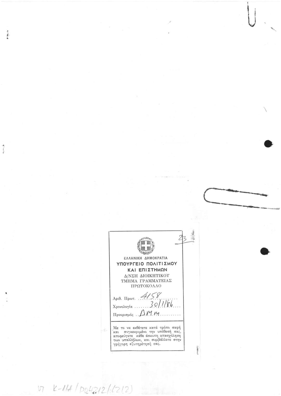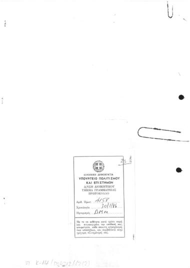 Επιστολή προς το ΥΠΠΟ με αρ.πρωτ.