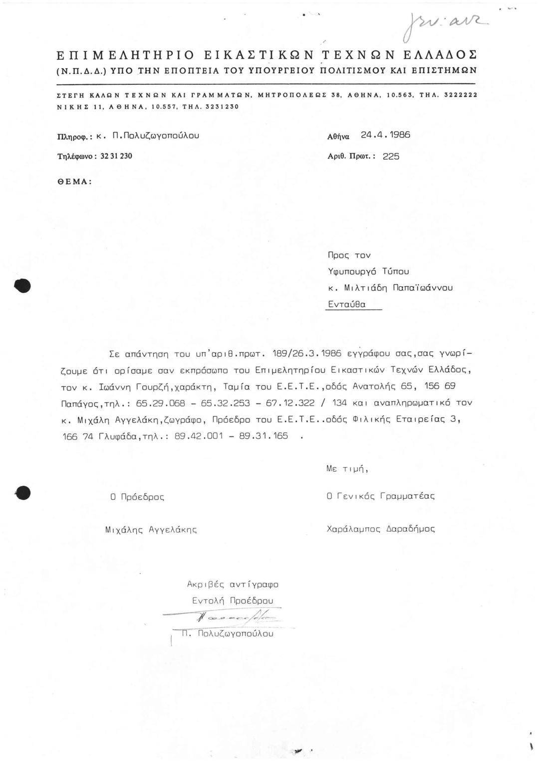 Επιστολή προς τον Υφυπουργό Τύπου κ. Μιλτιάδη Παπαϊωάννου με αρ.πρωτ.