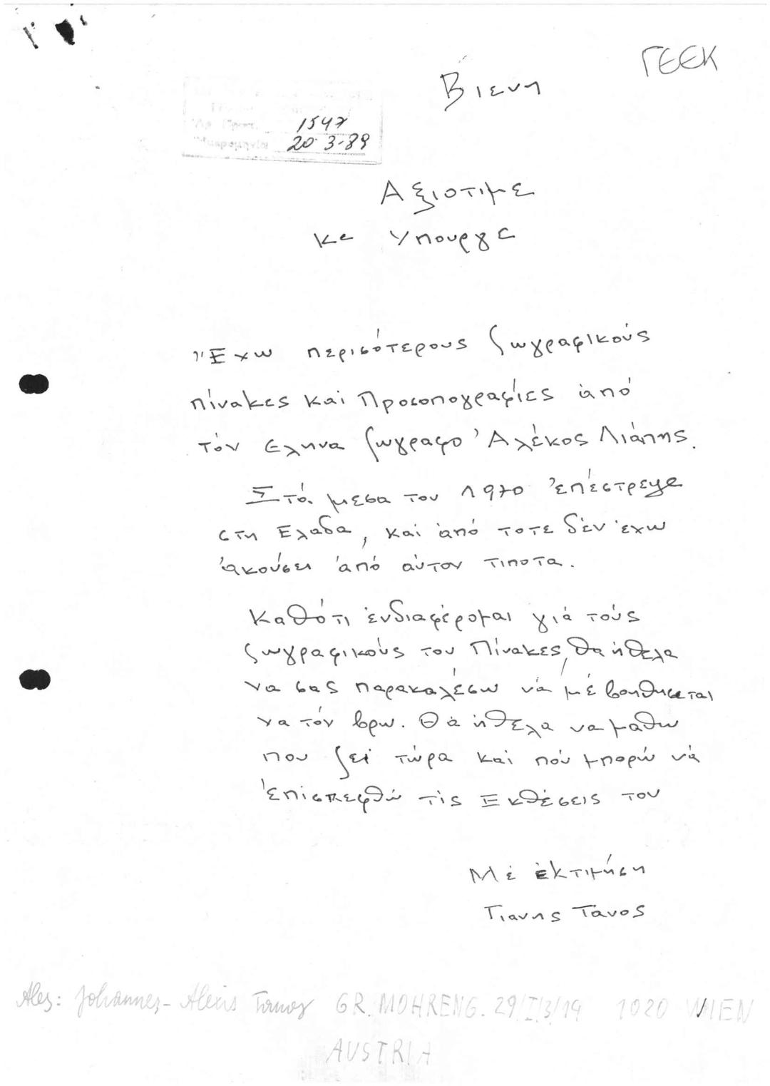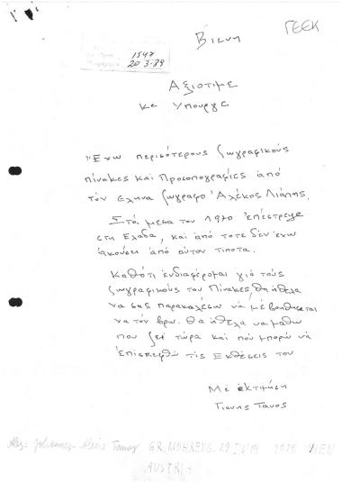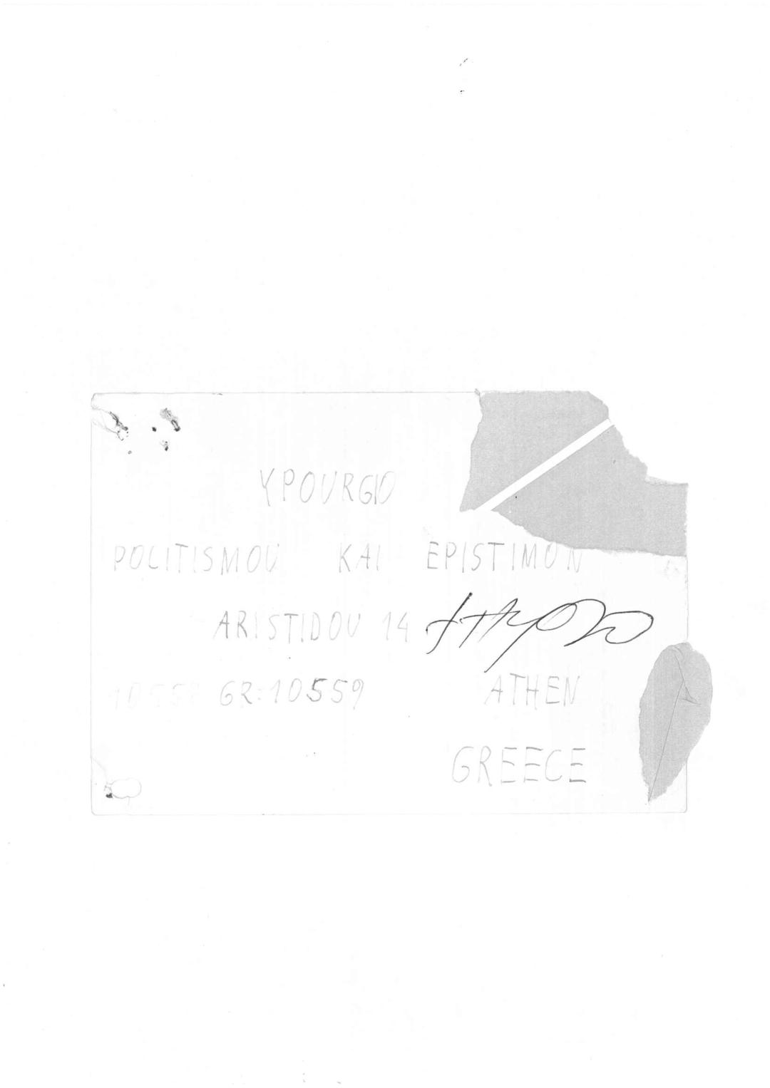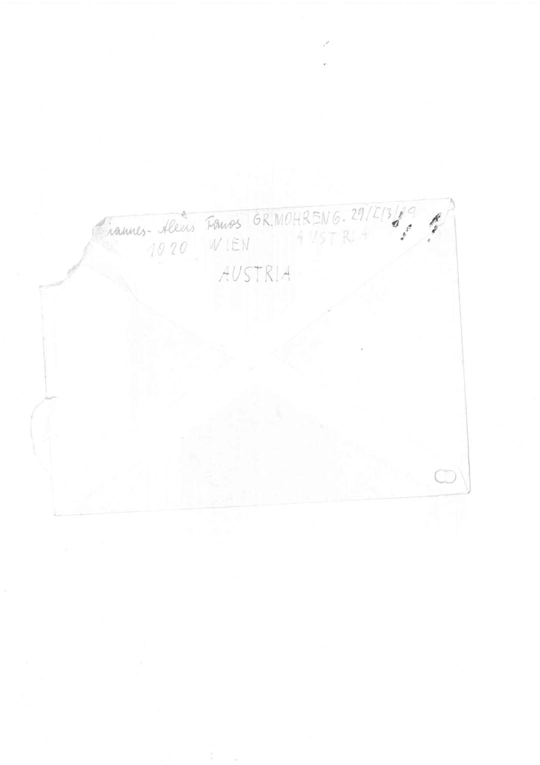 Επιστολή στα Αγγλικά, με επισυναπτόμενα αντίγραφα με διαφορετικούς αποδέκτες, πρωτότυπο χειρόγραφο και φάκελο επιστολής