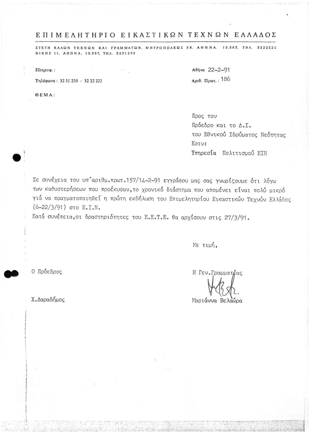 Επιστολή προς το ΕΙΝ