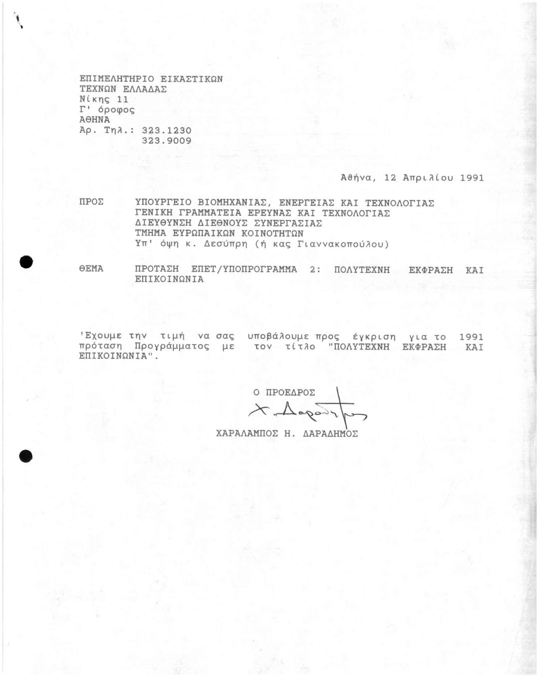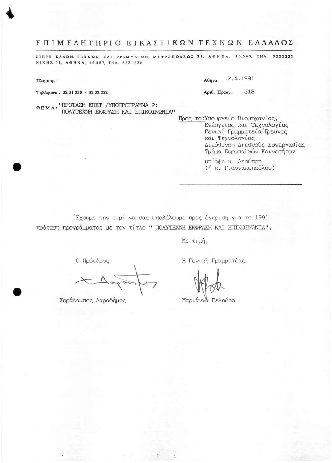 Επιστολή προς το Υπ. Βιομηχανίας