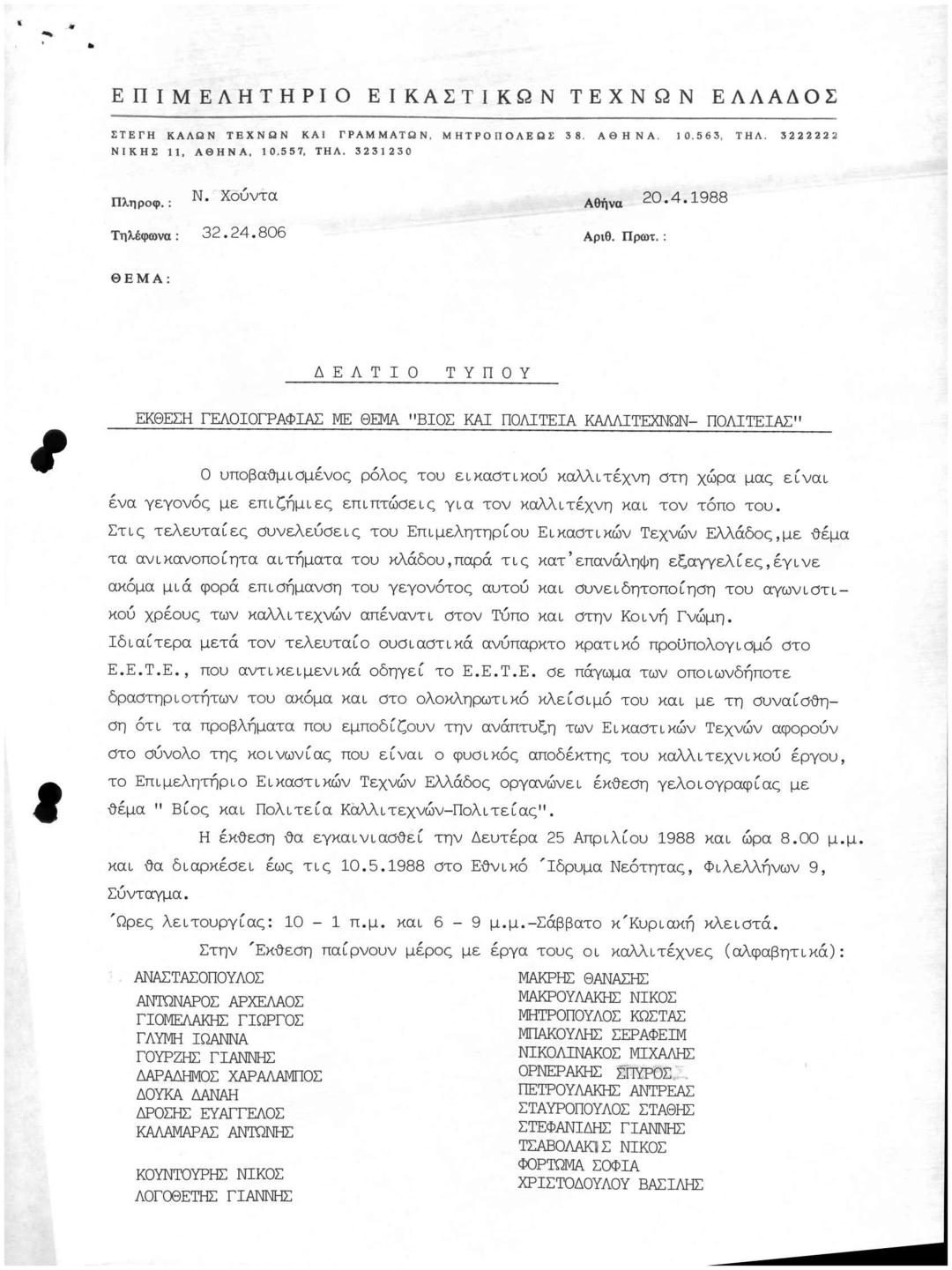 Έκθεση Γελοιογραφίας με Θέμα Βίος και Πολιτεία Καλλιτεχνών Πολιτείας