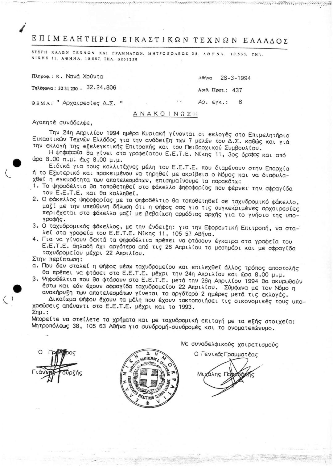 Περι Εκλογών για την Ανάδειξη 7 Μελών ΔΣ του ΕΕΤΕ Πειθαρχικού Συμβουλίου και Εξελεγκτικής Επιτροπής