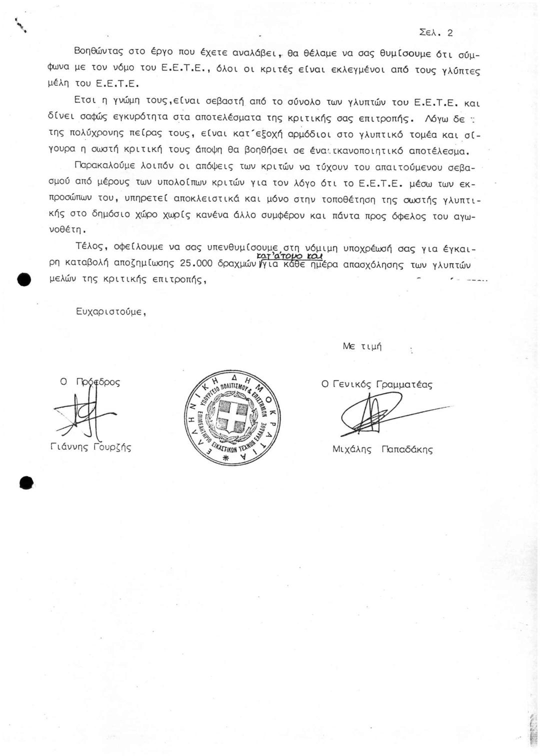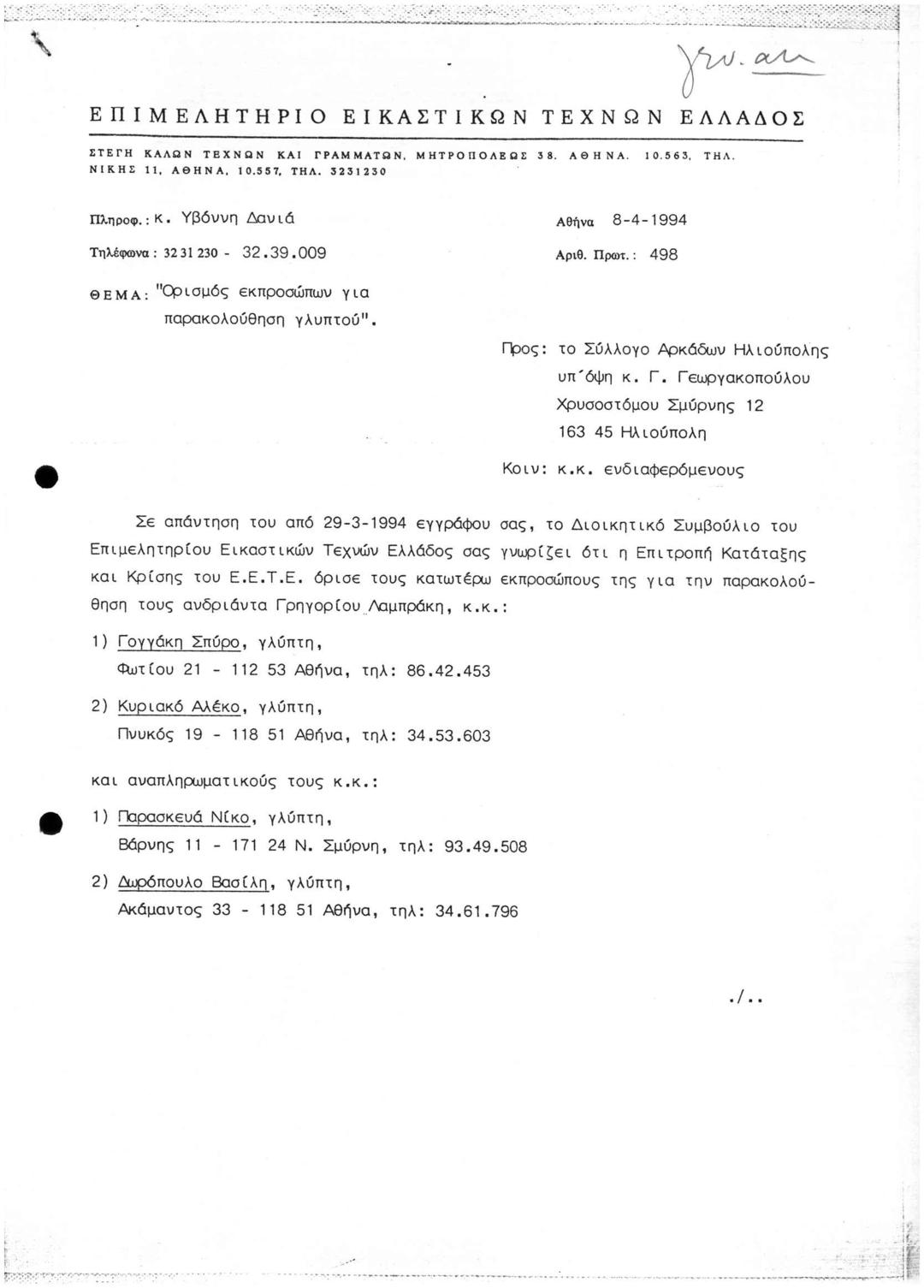 Ορισμός Εκπροσώπων ΕΕΤΕ για Παρακολούθηση Γλυπτού