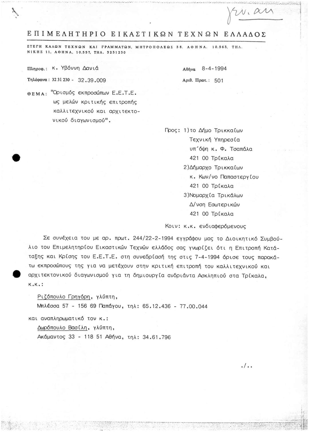 Ορισμός Εκπροσώπων ΕΕΤΕ Καλλιτεχνικού και Αρχιτεκτονικού Διαγωνισμού