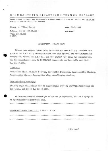 Περι Αποστολής Αποσπάσματος Πρακτικών της Επιτροπής Κατάταξης και Κρίσης του ΕΕΤΕ