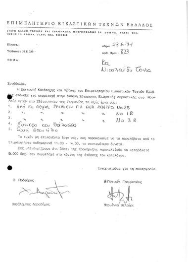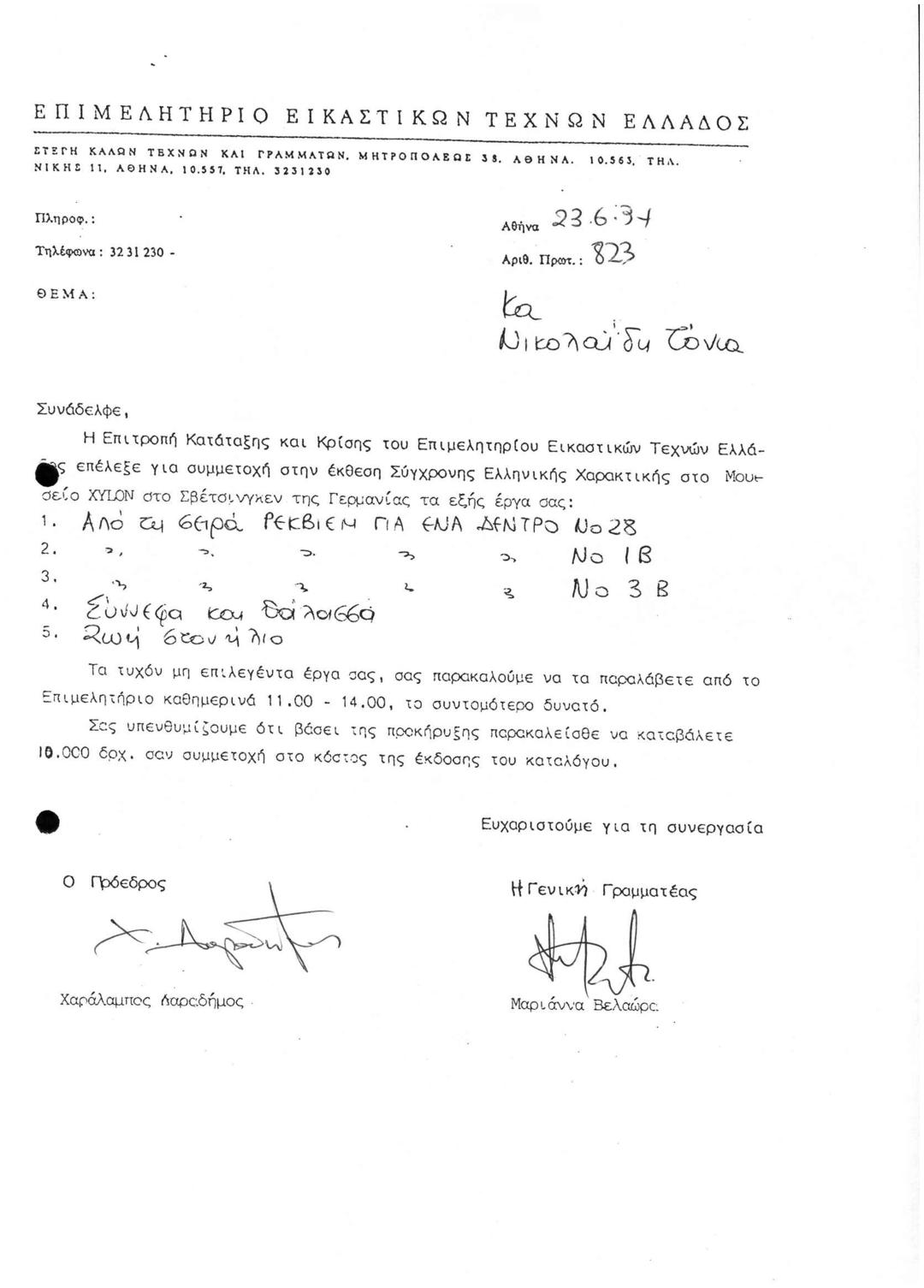 Περι Επιλογής Έργων Μέλους του ΕΕΤΕ για Συμμετοχή στην Έκθεση Σύγχρονη Ελληνική Χαρακτική στο Μουσείο XYLON