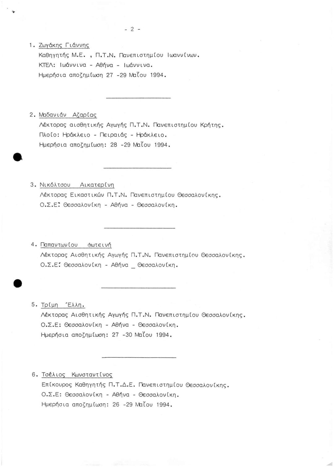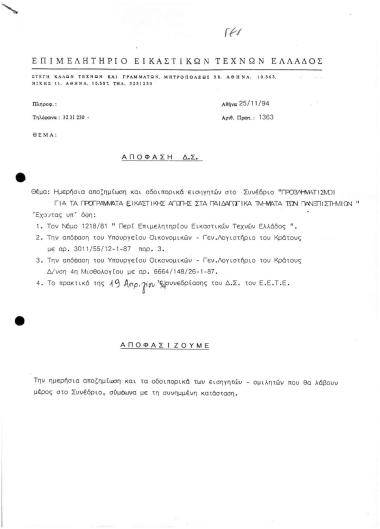 Περι Αποζημίωσης - Οδοιπορικών Εισηγητών - Ομιλητών στο Συνέδριο Προβληματισμοι για τα Προγράμματα Εικαστικής Αγωγής στα Παιδαγωγικά Τμήματα των Πανεπιστημίων