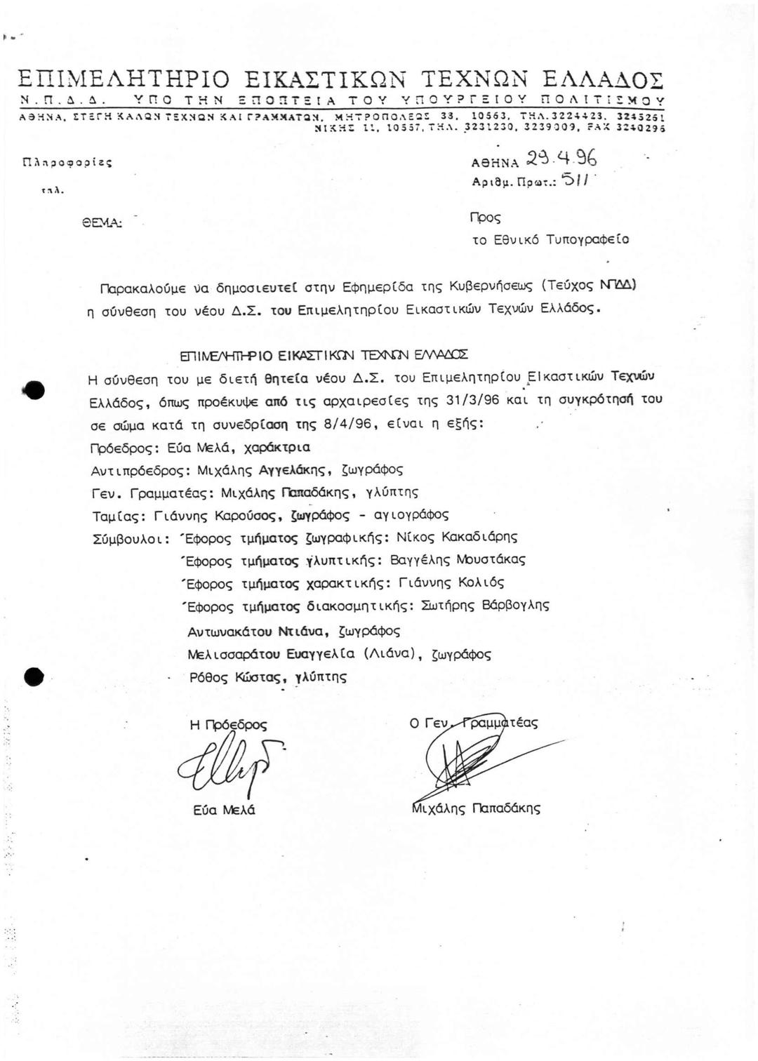 Περι Αιτήματος Δημοσίευσης στην Εφημερίδα της Κυβερνήσεως της Νέας Σύνθεσης του Δ.Σ του ΕΕΤΕ