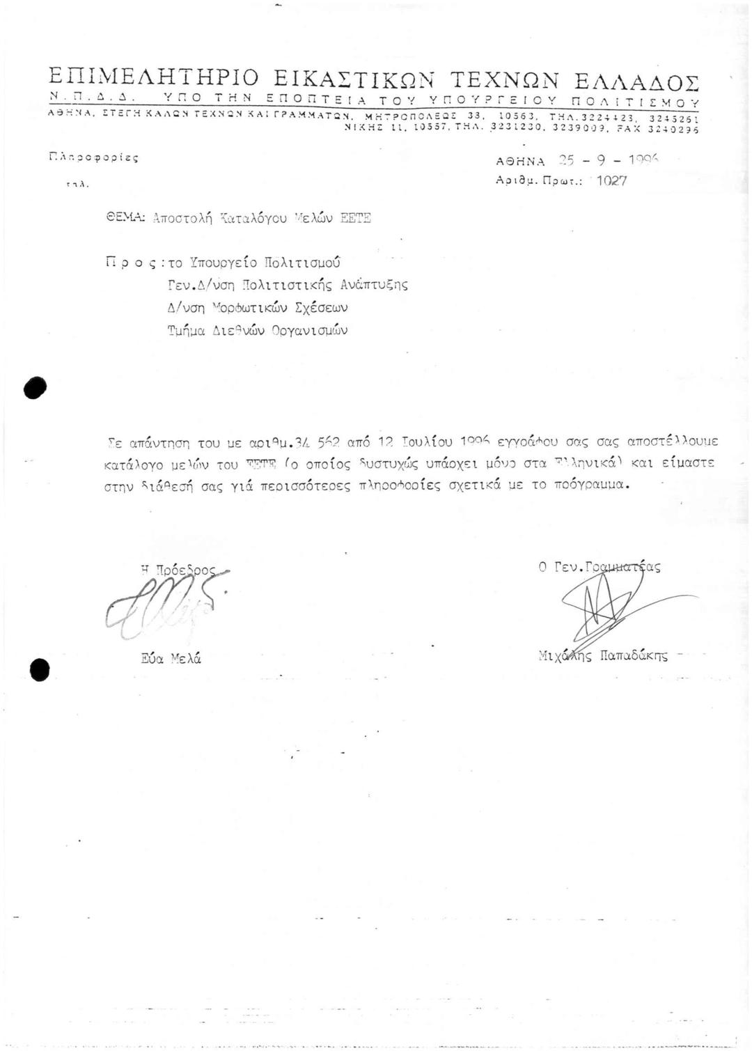 Αποστολή Καταλόγου μελών ΕΕΤΕ