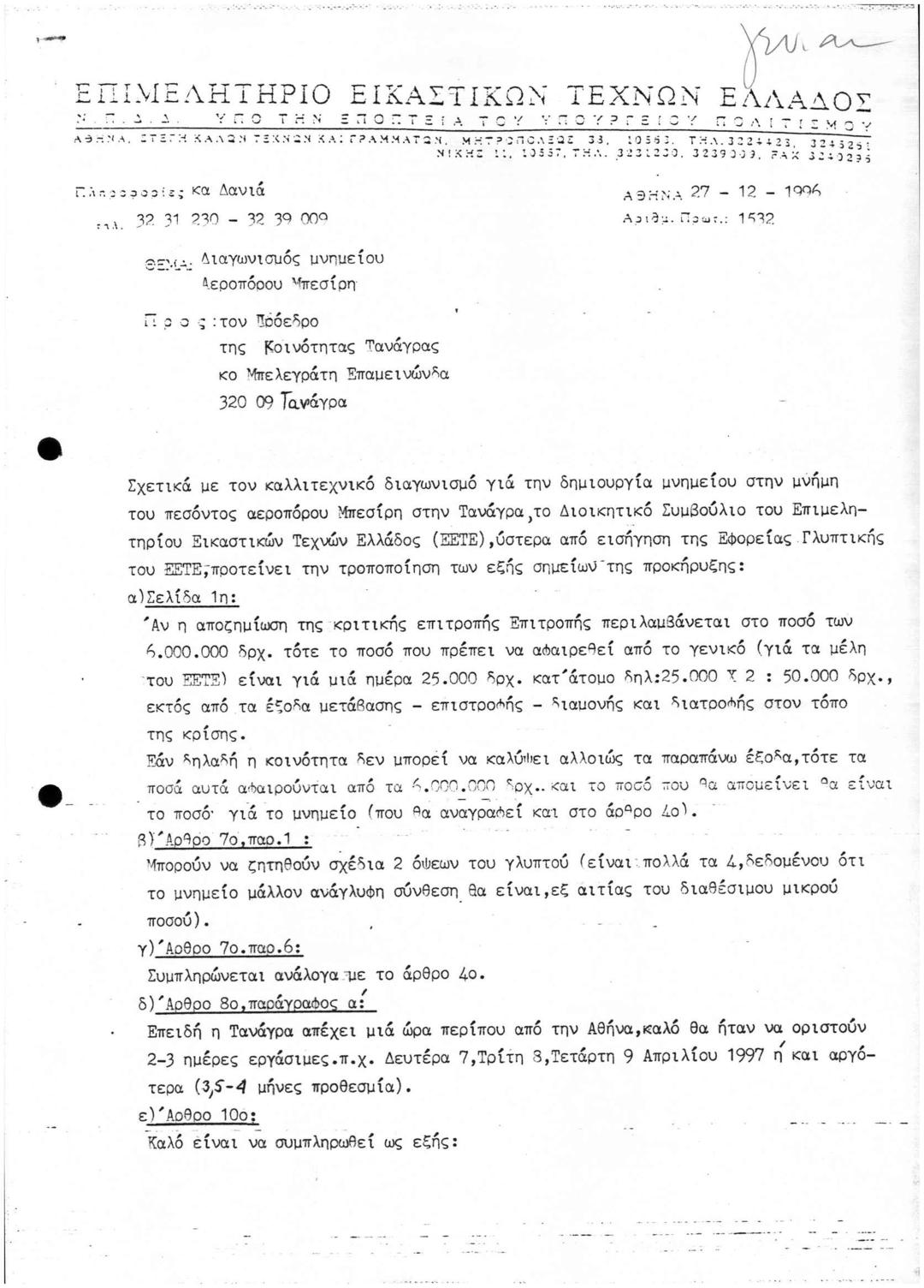 Τροποποίηση προκήρυξης διαγωνισμού μνημείου αεροπόρου Μπεσίρη