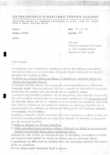 Επιστολή προς την Αν. Υπ. Πολιτισμού κ. Άννα Ψαρούδα Μπενάκη