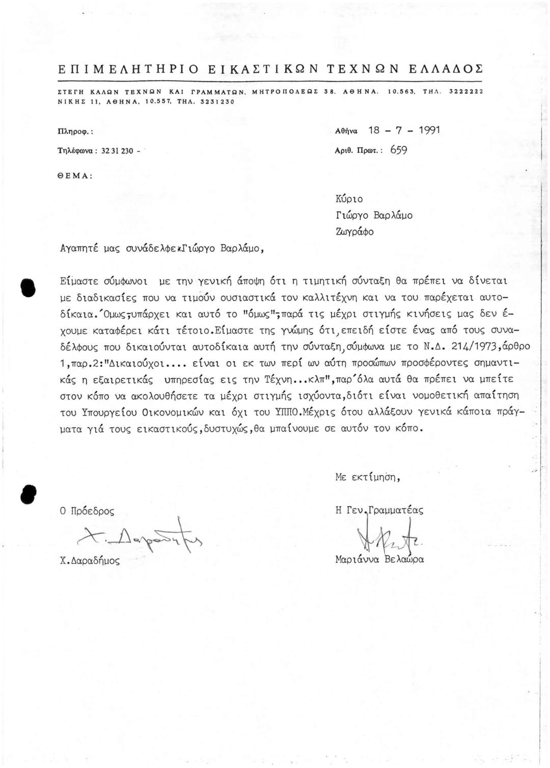 Επιστολή προς τον Ζωγράφο Γ. Βαρλάμο