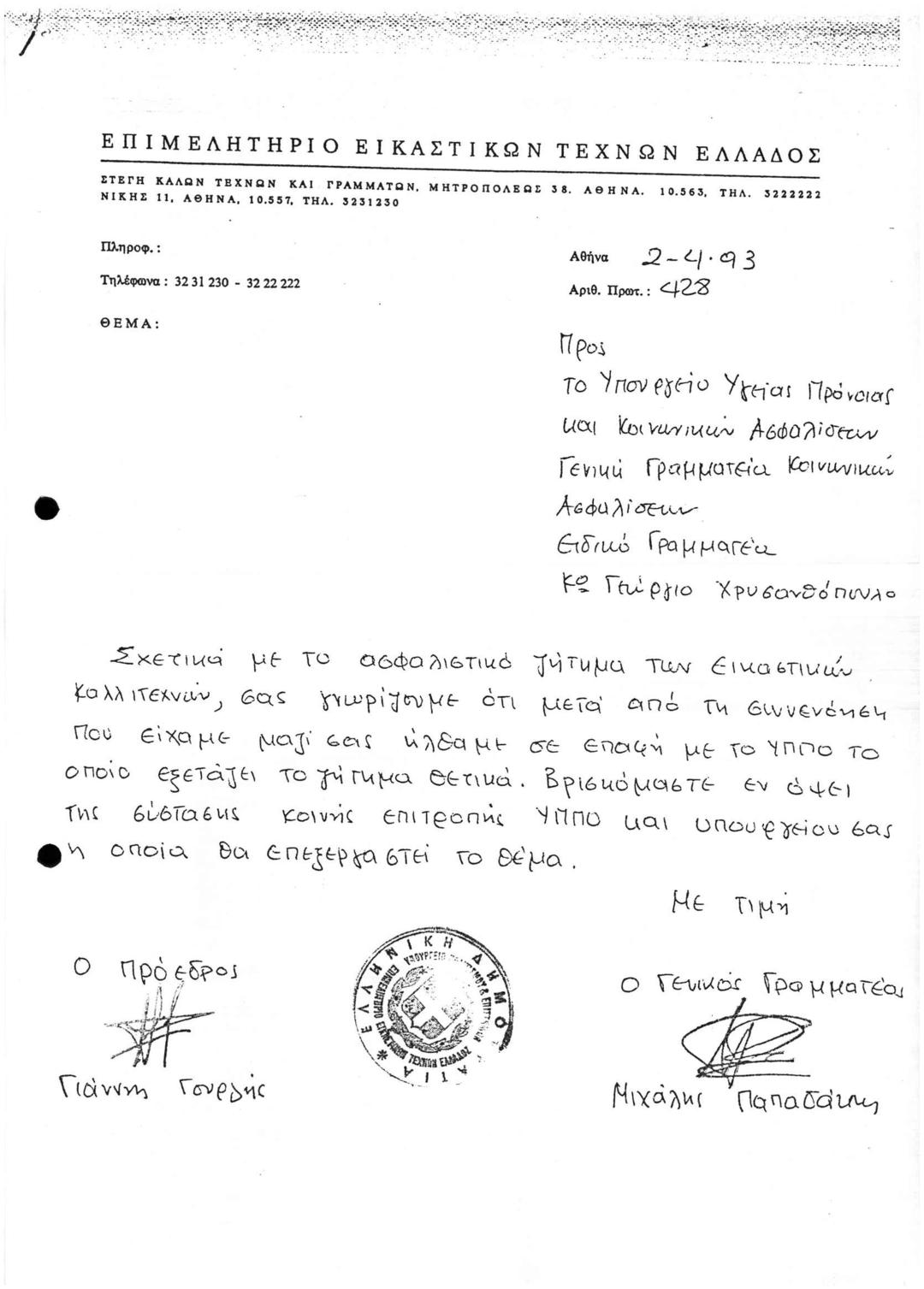 σχετικά με το αφαλιστικό ζήτημα των εικαστικών καλλιτεχνών