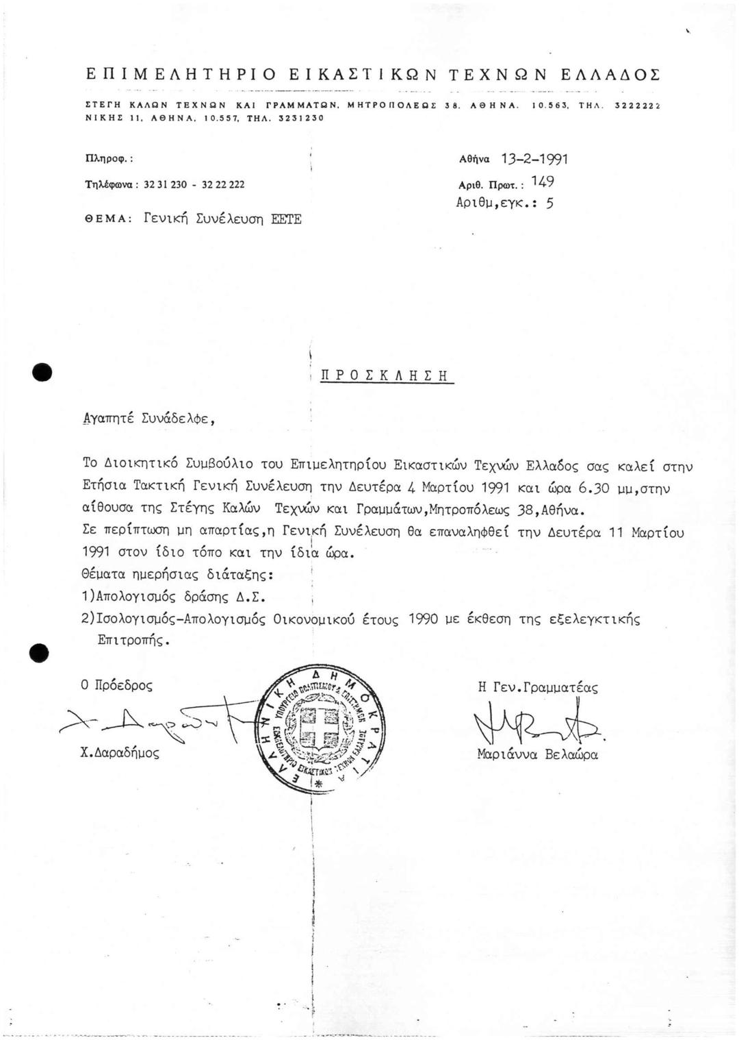 Αριθ. Εγκ. 5 Πρόσκληση σε Γ.Σ. του ΕΕΤΕ