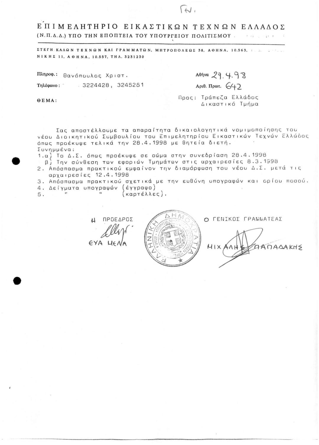 Αποστολή δικαιολογητικών νέου ΔΣ του ΕΕΤΕ