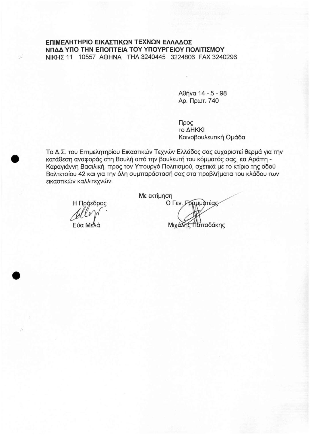 Κατάθεση αναφοράς στη Βουλή από βουλευτή για το κτίριο της οδού Βαλτετσίου 42