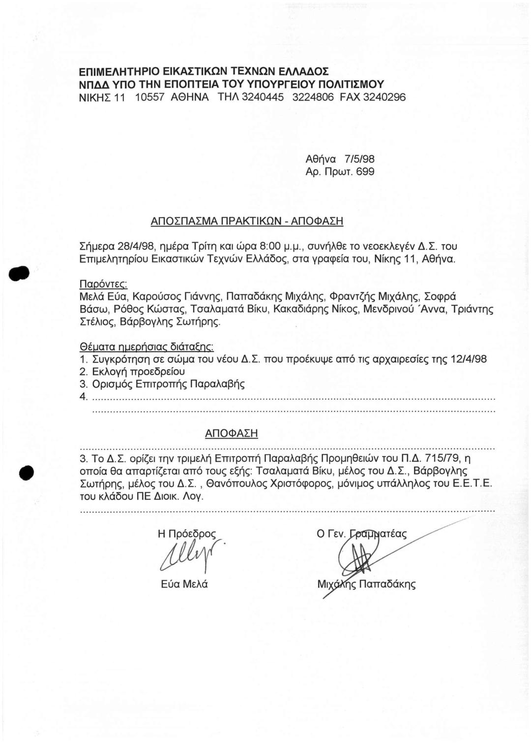 Archive Of The Chamber Of Fine Arts Of Greece
