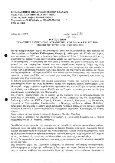 Συνάντηση συνεργασίας Κεραμιστών από Ελλάδα και Τουρκία