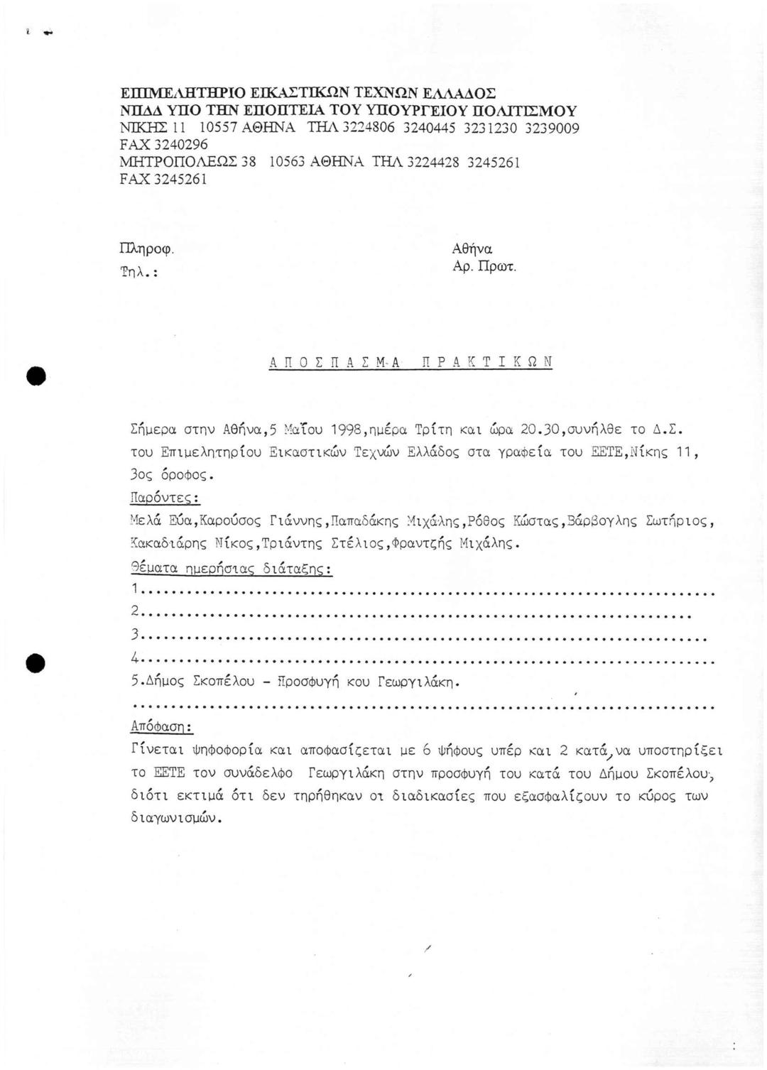 Περι Χορήγησης Αποσπάσματος Πρακτικών Συνεδριάσεων του Δ.Σ