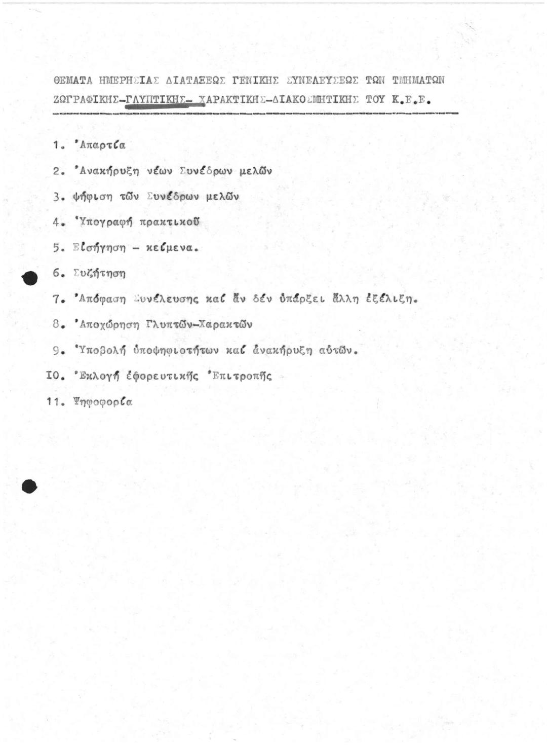 Θέματα Ημερησίας Διατάξεως ΓΣ των τμημάτων Ζωγραφικής- Γλυτπικής- Χαρακτικής -Διακοσμητικής του Κ.Ε.Ε.