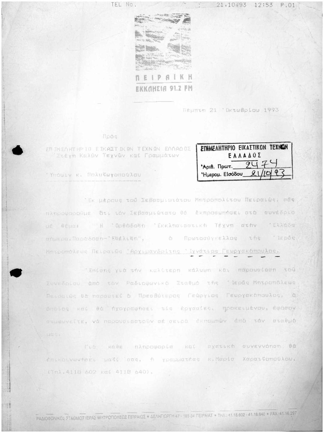 Απαντητική Επιστολή: Η ΟΡΘΟΔΟΞΗ ΕΚΚΛΗΣΙΑΣΤΙΚΗ ΤΕΧΝΗ ΣΤΗΝ ΕΛΛΑΔΑ ΣΗΜΕΡΑ