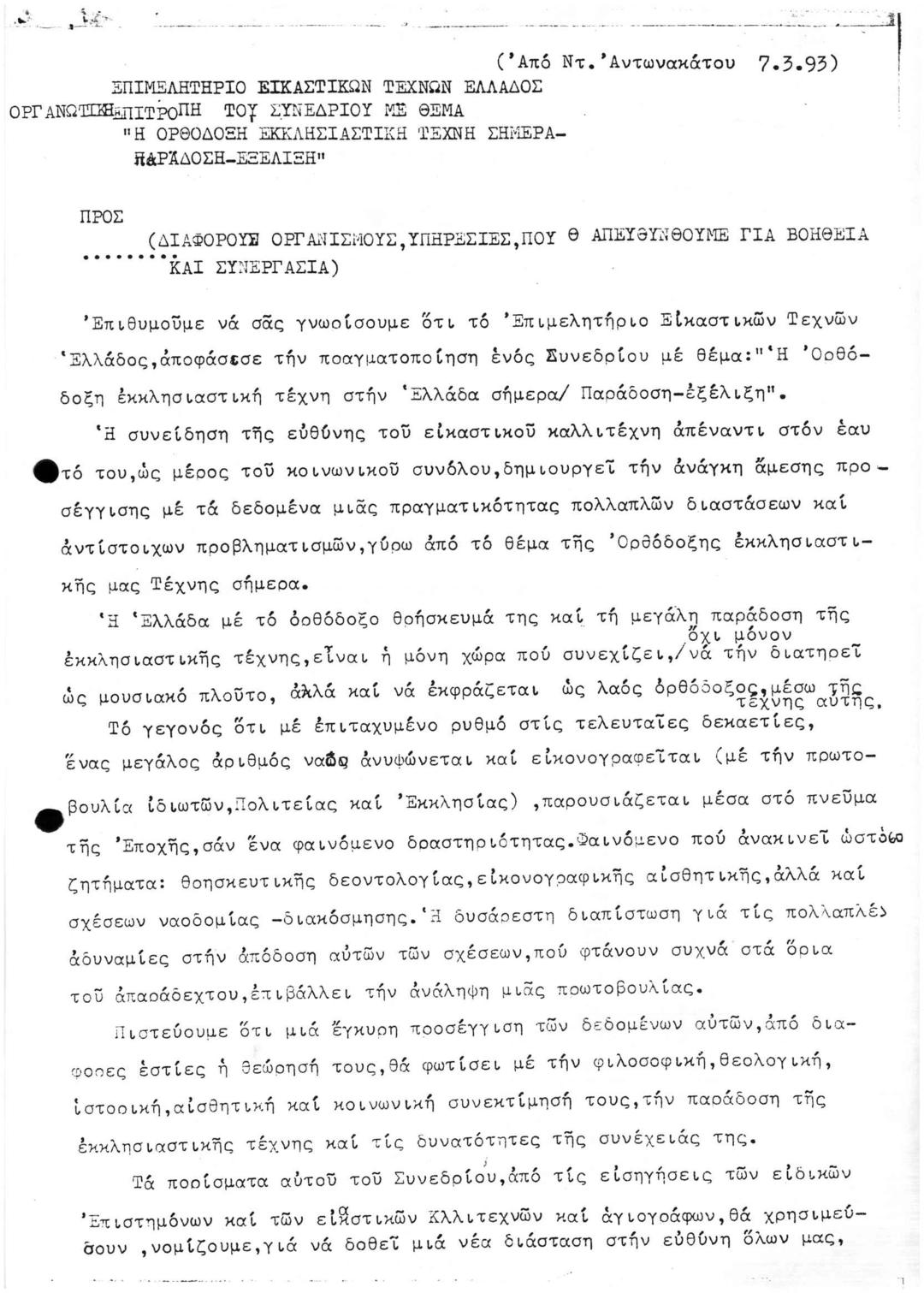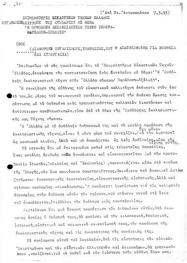 γενική επιστολή: Η ΟΡΘΟΔΟΞΗ ΕΚΚΛΗΣΙΑΣΤΙΚΗ ΤΕΧΝΗ ΣΤΗΝ ΕΛΛΑΔΑ ΣΗΜΕΡΑ