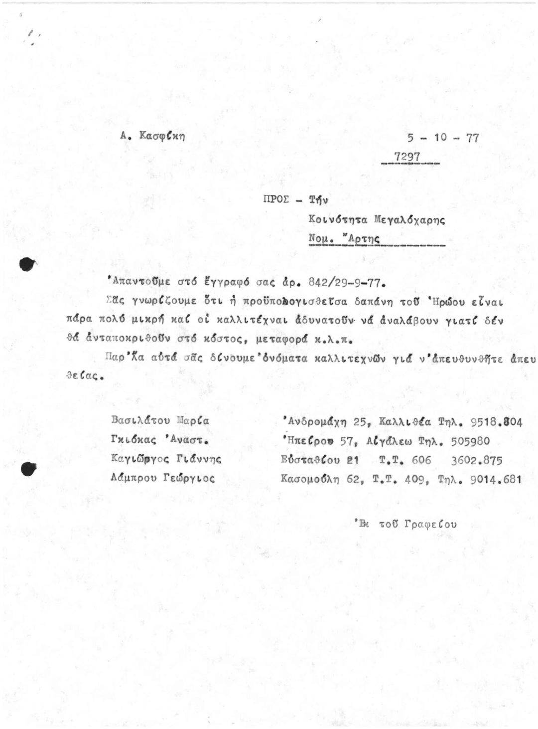 Περι Προϋπολογισθείσας Δαπάνης Διαγωνισμού Ανέγερσης Ηρώου στην Κοινότητα Μεγαλόχαρης Νομ. Άρτας