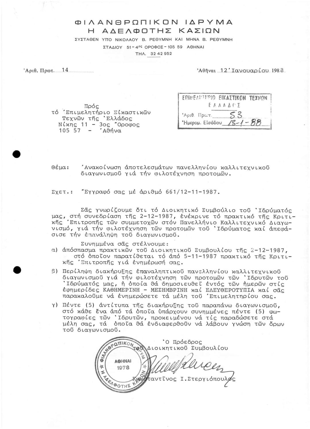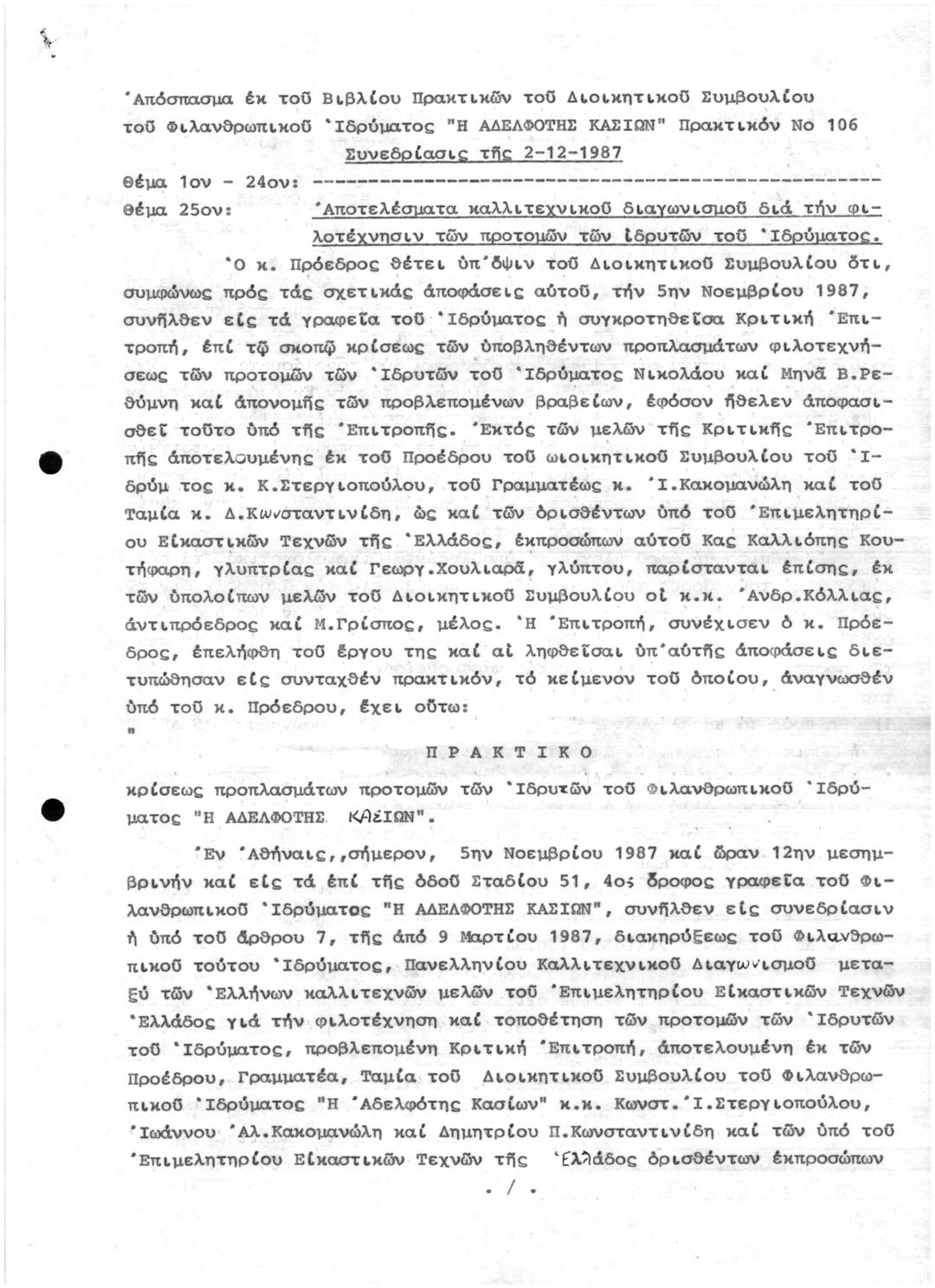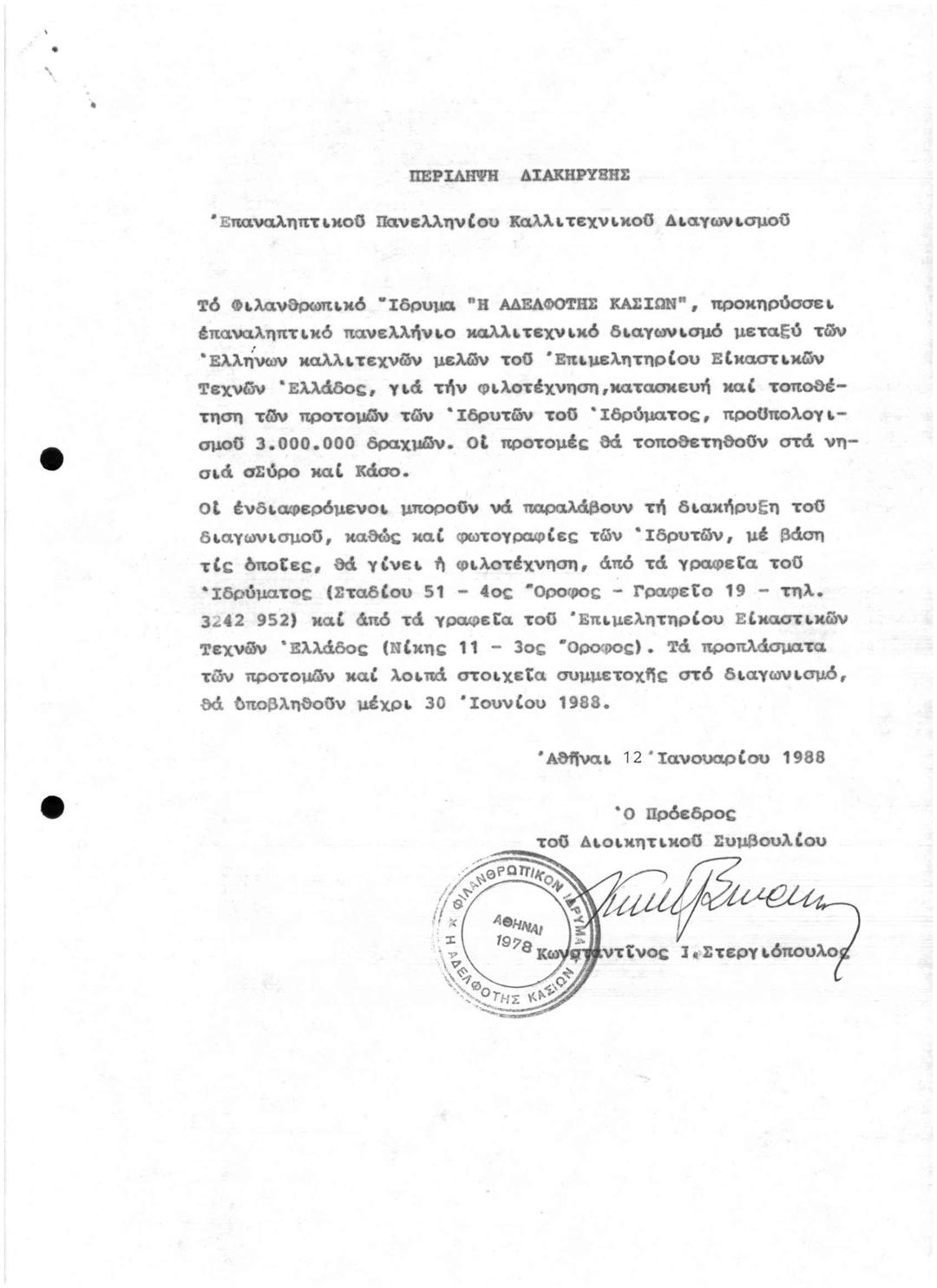Αποτελέσματα Επαναληπτικού Πανελλήνιου Διαγωνισμού Φιλοτέχνισης Προτομών του Ιδρύματος Η Αδελφότης Κασίων