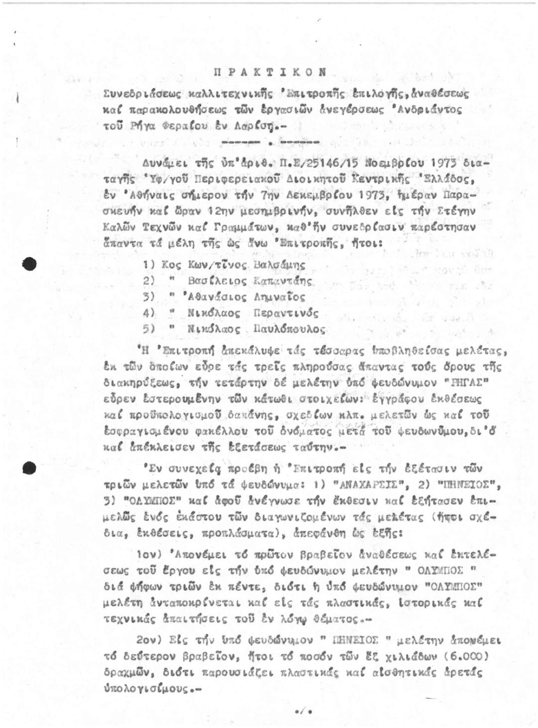 Περι Συνεδρίασης Επιτροπής Ανέγερσης Αδριάντα Ρήγα Φεραίου