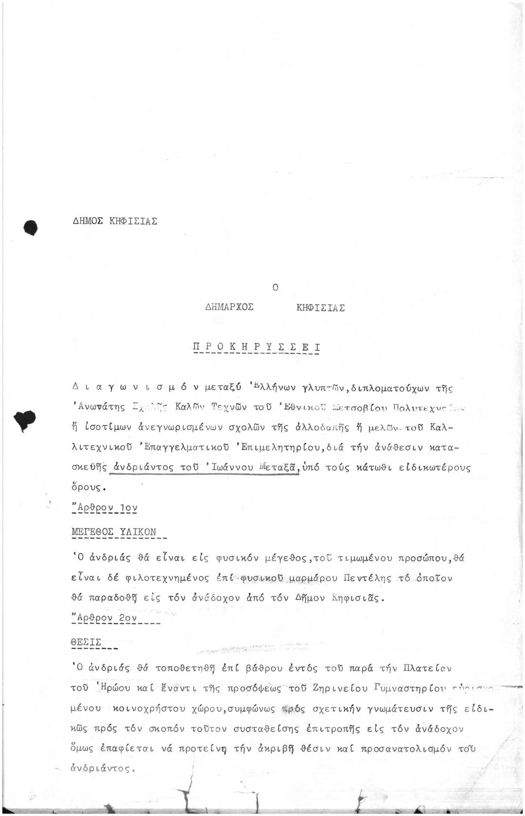 Προκήρυξη Καλλιτεχνικόυ Διαγωνισμού αδριάντα Ιωάννη Μεταξα