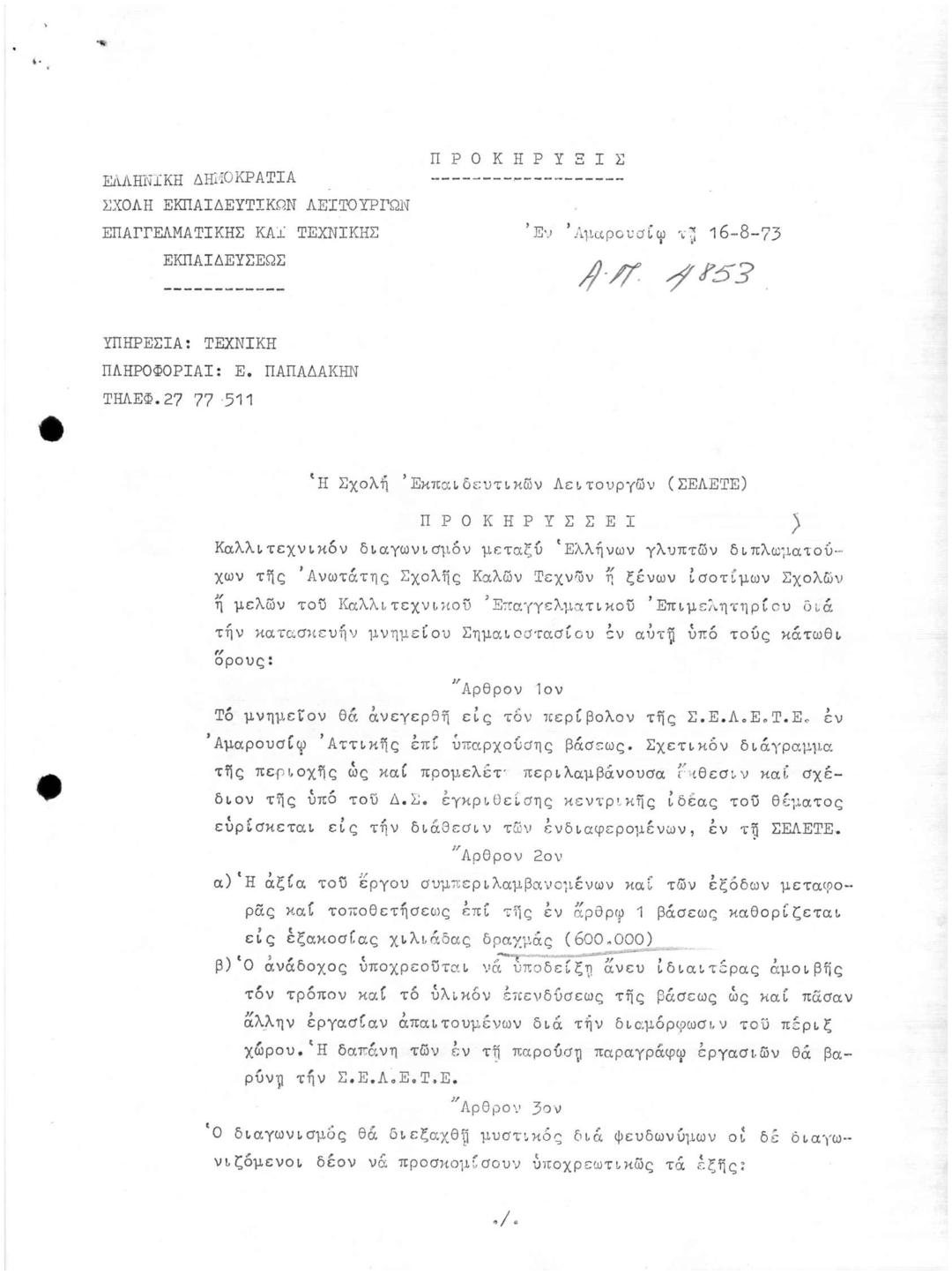 Καλλιτεχνικός Διαγωνισμός της Σχολής Εκπαιδευτικών Λειτουργών ΣΕΛΕΤΕ