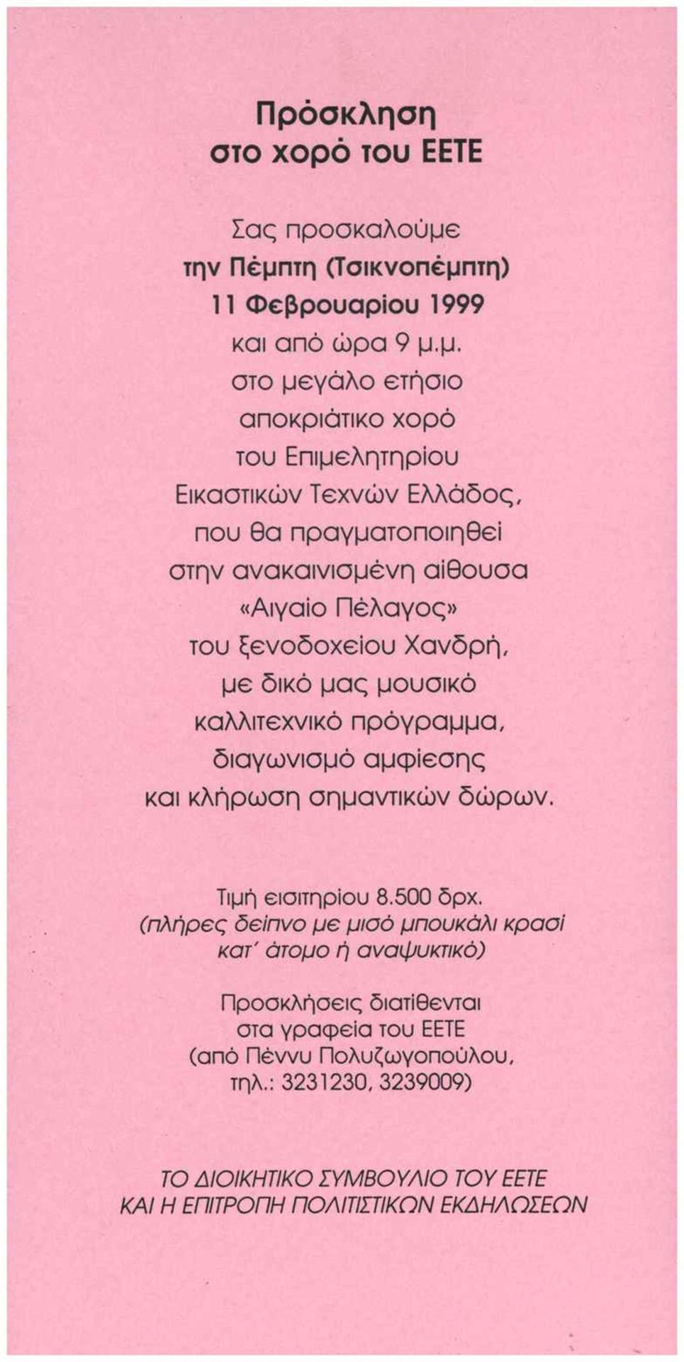 Πρόσκληση στο χορό του ΕΕΤΕ: Χορός του ΕΕΤΕ