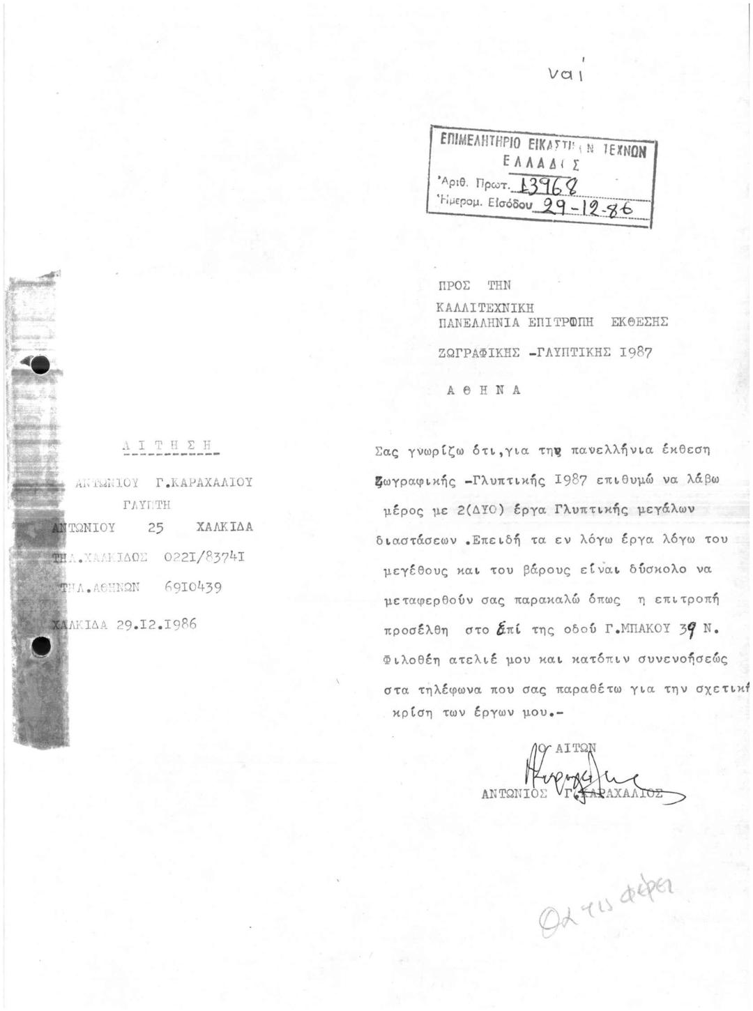 Πανελλήνια Έκθεση 1987/Ντοσιέ Π3: Προς την Κριτική και Οργανωτική Επιτροπή της Πανελληνίου