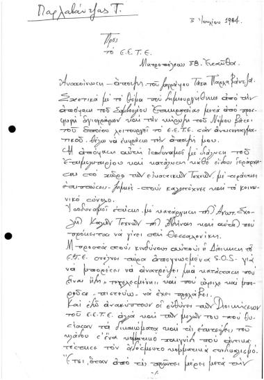 Επιστολή του κ. Τ. Παρλαβάντζα σχετικά με το άρθρο του Ν. 1218/81