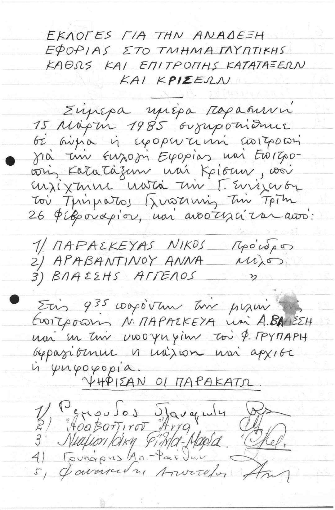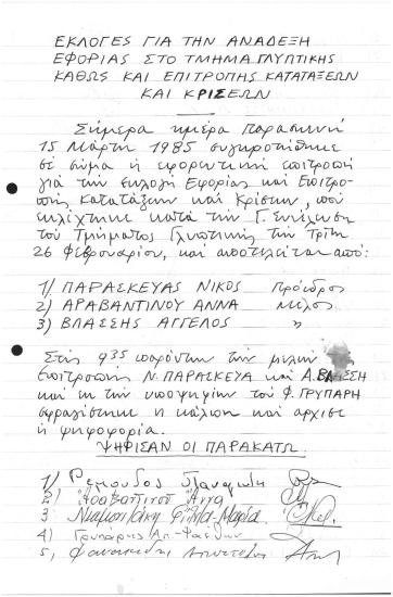 Εκλογές για την ανάδειξη εφορείας στο τμήμα γλυπτικής καθώς και επιτροπής κατατάξεων και κρίσεων