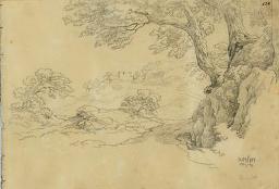 Εξοχικό τοπίο με οικοδόμημα στο βάθος