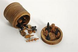 Ξύλινο κουτί με πιόνια από το σκάκι του Αλέξανδρου Υψηλάντη